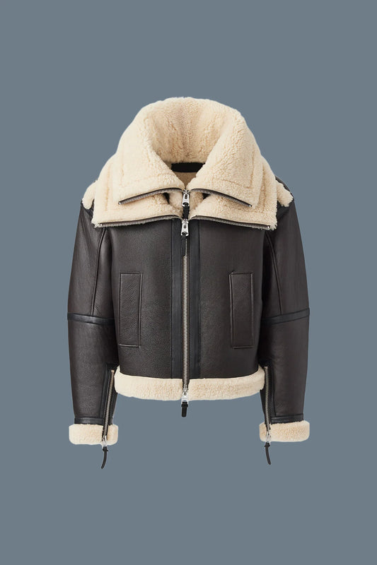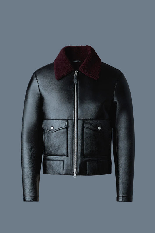 Men’s Sheepskin Leather Jacket with Shearling Collar