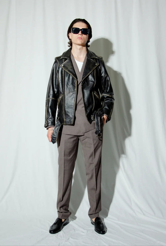 1950's Half Belt Leather Jacket - For Men
