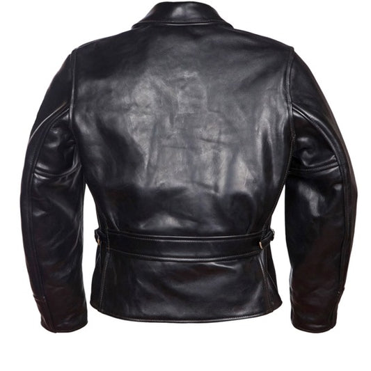 Chaqueta de cuero con medio cinturón para hombre, años 30