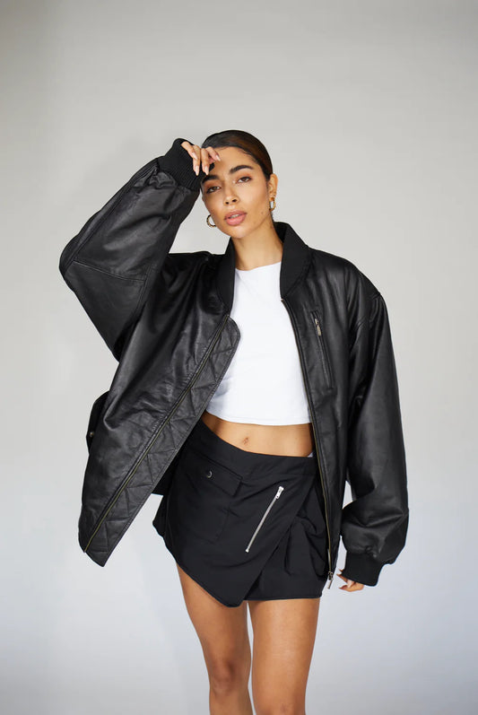 Chaqueta bomber de cuero de gran tamaño de los años 90 para mujer